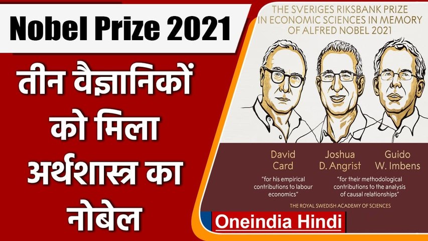 नई दिल्ली, 11 अक्टूबर। दुनिया से सबसे प्रतिष्ठित पुरस्कारों में से एक नोबेल पुरस्कार की घोषणा की जा रही है। अब तक कई लोगों को उनके क्षेत्र में सराहनीय काम करने के लिए नोबेल पुरस्कार, 2021 दिया जा चुका है। आज यानी सोमवार को आर्थिक विज्ञान (अर्थशास्त्र) के लिए नोबेल पुरस्कार की घोषणा की गई, जिसे डेविड कार्ड, जोशुआ डी एंग्रिस्ट और गुइडो डब्ल्यू इम्बेन्स को संयुक्त रूप से दिया गया।