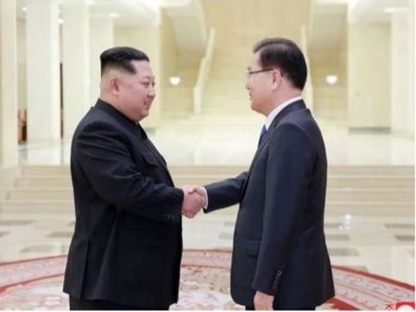 नॉर्थ कोरिया के अनुसार, किम जोंग उन ने साउथ कोरियाई प्रतिनिधियों का वेलकम किया। दोनों देशों के बीच विवाद को खत्म करने और आपसी सहयोग को लेकर बात हुई थी। सुप्रीम लीडर किम जोंग उन बिल्कुल माओ-स्टाइल में लॉन्ग सूट में साउथ कोरियाई राष्ट्रपति के नेशनल सिक्योरिटी डायरेक्टर से हाथ मिलाकर उनका वेलकम किया। साउथ कोरिया और नॉर्थ कोरियाई प्रतिनिधियों के बीच मंगलवार को एक बार फिर से मुलाकात होगी, जिसमें न्यूक्लियर प्रोग्राम को लेकर चर्चा हो सकती है।