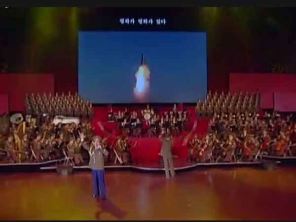 जैसे ही परफॉर्मेंस खत्म होती है लोग हुर्रा कहकर चिल्लाते हैं। नॉर्थ कोरिया के सरकारी न्यूज चैनल केसीएनए की फुटेज में नजर आ रहा है कि वीडियो के बाद किम जोंग उन मुस्कुरात हुए नजर आ रहे हैं। केसीएनए की ओर से कहा गया कि किम जोंग उन ने भीड़ का अभिवादन किया और कलाकारों को उनकी सफल अदाकारी के लिए बधाई भी दी। पिछले दिनों चीन ने दुनिया को चेतावनी दी है कि नॉर्थ कोरिया और अमेरिका के बीच किसी भी पल जंग का आगाज हो सकता है। विदेश मंत्री वांग याई कहा कि दोनों देशों के बीच तनाव जिस तरह से बढ़ रहा है, उससे तो यही लग रहा है और अगर युद्ध छिड़ा तो इसका विजेता कोई भी देश नहीं होगा।