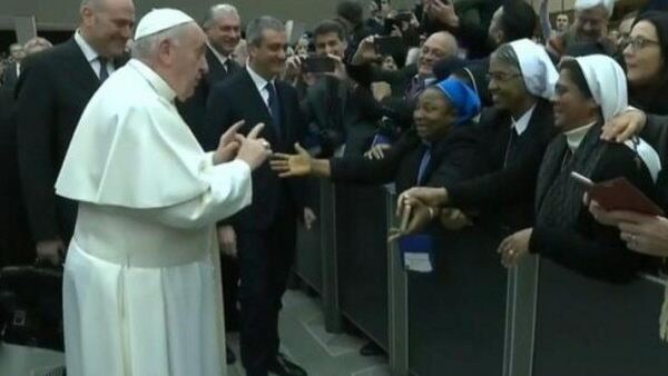 नन के जोर देने पर पोप फ्रांसिस मान गए और उसके सामने शर्त रखी कि वह शांत रहे और किस करते समय काटेगी नहीं। जब नन ने शर्त मान ली तो उसके बाद पोप फ्रांसिस महिला के पास गए और उसे किस किया, इस दौरान उन्होंने नन को गले भी लगाया। पोप के ऐसा करने से नन की खुशी का ठिकाना नहीं रहा और वहां खड़े लोग भी प्रसन्न दिखे। यह पूरा वाक्या वीडियो में कैद हो गया जो अब सोशल मीडिया पर खूब वायरल हो रहा है।