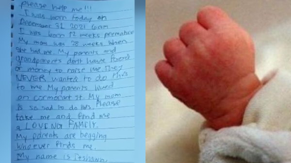रॉक्सी लेन ने अपने फेसबुक पेज पर इस बच्चे के साथ मिली जिस चिट्ठी को पोस्ट किया है, उसमें लिखा है, 'प्लीज मेरी मदद कीजिए। 31 दिसंबर 2021 को आज सुबह 6 बजे मेरा जन्म हुआ है। मेरी मां की गर्भावस्था के 28वें हफ्ते में ही मेरा जन्म हो गया और मैं 12 हफ्ते का प्रीमेच्योर हूं। ना ही मेरे माता-पिता के पास और ना ही मेरे दादा-दादी के पास मुझे पालने के लिए खाना या पैसे नहीं हैं। वो मेरे साथ ऐसा बिल्कुल नहीं करना चाहते थे, लेकिन मजबूरन उन्हें ये करना पड़ा है।'