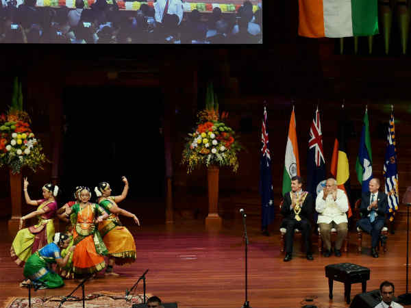 कार्यक्रम की शुरुआत सांस्कृतिक रंगों के साथ हुई। सितार वादन और दुर्गा पूजा के बीच कार्यक्रमों को इस तरह से पेश किया जा रहा है कि मानो मोदी सिडनी में नहीं बल्कि भारत में ही किसी कार्यक्रम में शिरकत कर रहे हों।