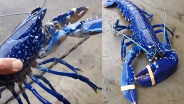 नीला झींगा बहुत ही दुर्लभ जीव है, जो 20 लाख झींगों में एक होता है। इसका वीडियो वायरल हो रहा।