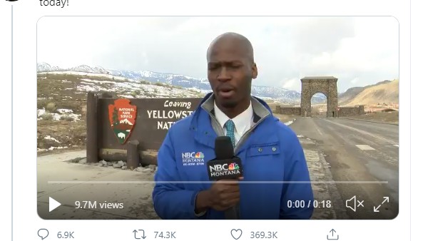 नई दिल्ली। मोंटाना टेलीवीजन के रिपोर्टर जोकि येलोस्टोन नेशनल पार्क में रिपोर्टिंग कर रहे थे, इस दौरान एक जंगली सांड़ वहां आ जाता है, इसपर रिपोर्टर ने जो प्रतिक्रिया दी है, उसका वीडियो सोशल मीडिया पर काफी तेजी से वायरल हो रहा है। दरअसल जंगली सांड़ रिपोर्टर की ओर आने लगता है, इसी दौरान उसपर रिपोर्टर की नजर पड़ती है और वह वहां से निकल लेते हैं। इस वीडियो को खुद रिपोर्टर ने सोशल मीडिया पर साझा किया है जिसे अबतक तकरीबन एक करोड़ लोग देख चुके हैं।