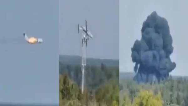 रूसी सैन्य विमान पहले हवा में आग की लपटों से घिरा, फिर धड़ाम से गिरा, देखें Video