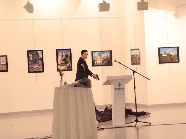 रूसी राजदूत के हत्यारे की पहचान टर्की के स्पेशल फोर्सेज पुलिस के मेंबर के तौर पर की गई है। इस हत्याकांड के वीडियो में आप साफ देख सकते हैं कि आर्ट गैलरी में भाषण दे रहे रूसी राजदूत के ठीक पीछे खड़े पुलिसमेन ने उन पर गोलियां बरसा दीं। मौके पर ही राजदूत की मौत हो गई और हत्यारा इसके बाद चिल्ला-चिल्लाकर बोलने लगा।