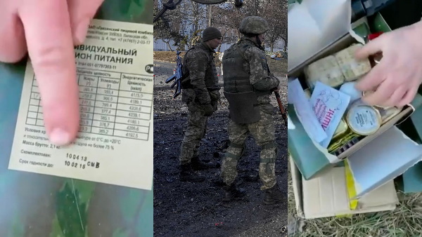 हालांकि वीडियो कब का है, यह स्पष्ट नहीं है। इसमें सैनिक चाकू से पैकेट खोलता हुआ दिख रहा है। ये एमआरई (रेडी-टू-ईट) फील्ड राशन है। वीडियो में सैनिक कहता है कि यूक्रेन में रूसी बिना किसी कारण के मर रहे हैं और रूसी सैनिकों की माताओं से अपने बेटों को यूक्रेन जाने से रोकने की गुहार लगाता हुआ दिख रहा है। रूसी संघ कथित तौर पर "24-घंटे का राशन देती है। जिसमें सात किस्में होती हैं।