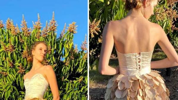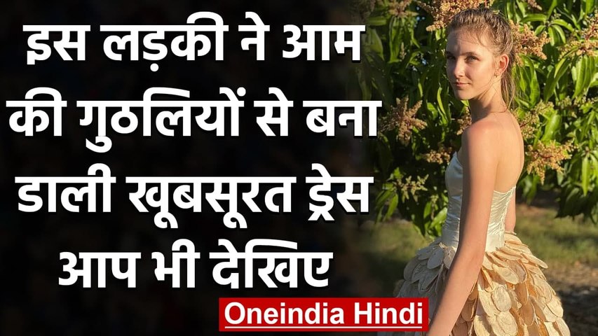 स्कूल में पढ़ने वाली इस लड़की ने आम की गुठलियों से बना ली खूबसूरत ड्रेस, दुनियाभर में हो रही तारीफ