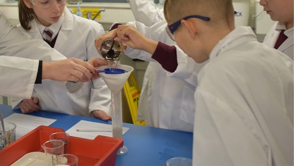 केमिस्ट्री लैब में बच्चे कर रहे प्रयोग
