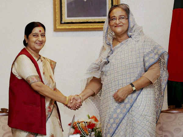 पहली विदेश यात्रा पर सुषमा स्वराज ने की शेख हसीना से मुलाकात