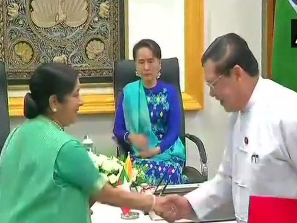 म्यांमार में सुषमा स्वराज: आंग सान सूची से मिलीं विदेश मंत्री, दोनों देशों के बीच 7 समझौतों पर हस्ताक्षर