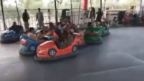 पार्क में खिलौना गाड़ी चलाते तालिबानी