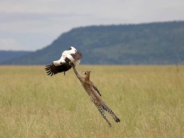 लेकिन तभी पक्षी वापस उड़ गया। इस घटना को ऑस्ट्रेलिया के एक फोटो ग्राफर ने अपने कैमरे में कैद कर लिया। ये वीडियो घास से शुरू होता, तभी एक सफेद रंग का पक्षी घास पर आता है, ये सब चल रहा था तभी गेंदुए ने पक्षी पर हमला कर दिया।