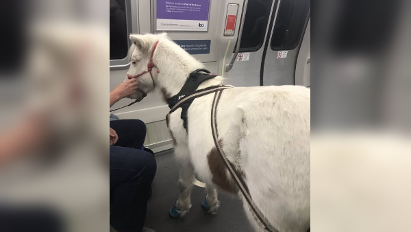 यह देखना बहुत अजीब होता है जब आपके साथ यात्री ट्रेन में कोई घोड़ा सफर करे। भारत में ऐसा कोई कानून नहीं है कि कोई अपने पालतू जानवर के साथ पब्लिक ट्रांस्पोर्ट में सफर कर सके। लेकिन अमेरिका में कई ऐसे स्थान हैं जहां यह कानून है। घोड़ा स्वीट रॉकरिज स्टेशन से सवार हुआ था। बे एरिया रैपिड ट्रांजिस्ट (बीएआरटी) के सलाहकार ने बताया कि सवारी जानवर होने की वजह से घोड़े के सफर संबंधी कागजात देखने के बाद उसे ट्रेन में सफर करने की इजाजत दी गई।