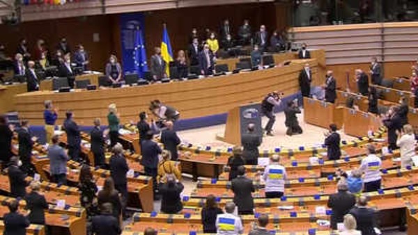 यूक्रेन के राष्ट्रपति ने मंगलवार को यूरोपीय संसद में जोरदार और भावुक भाषण किया, जिसके बाद सभी सदस्य देशो ने खड़े होकर जोरदार तालियों के साथ उनका स्वागत किया।
