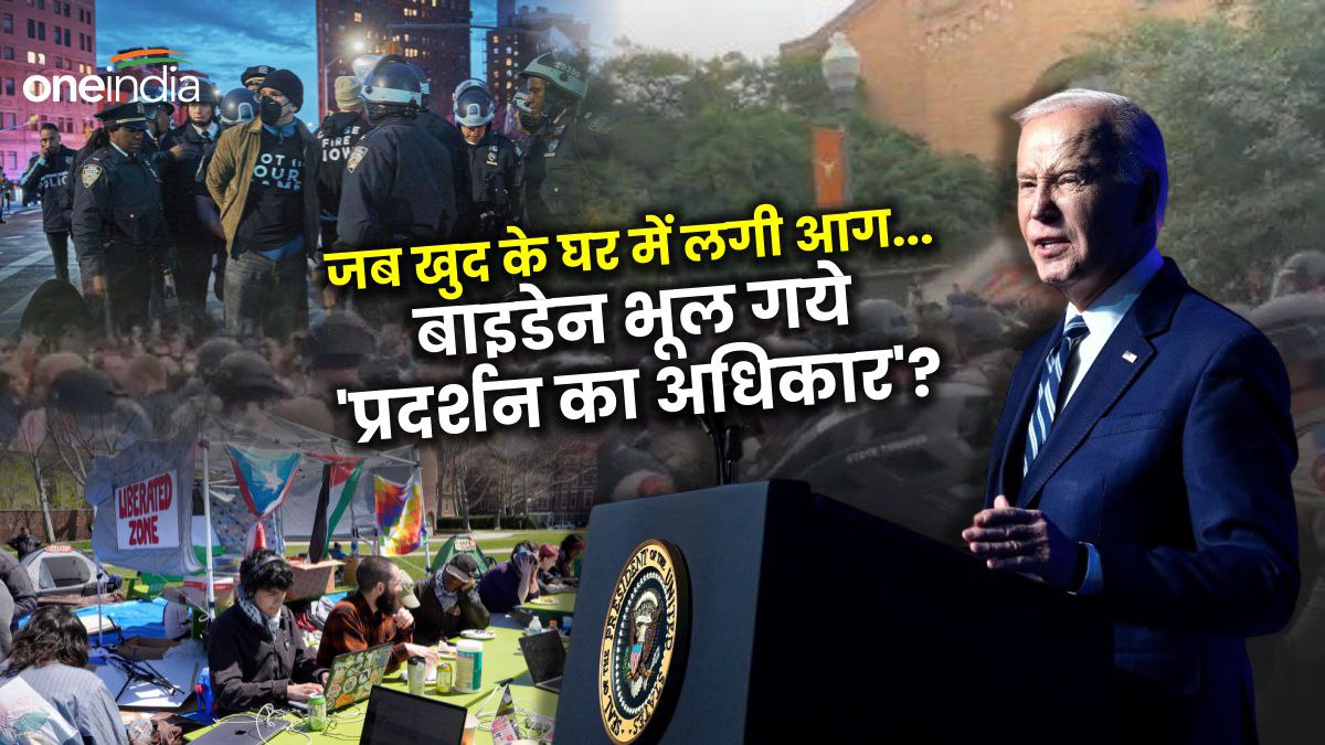 US Protest Over Gaza: बात बात पर भारत को लोकतंत्र, प्रदर्शन का अधिकार, फ्रीडम ऑफ स्पीच का ज्ञान देने वाला अमेरिका, आज जब अपने घर में प्रदर्शन की आग लगी है, तो उसे बेरहमी से कुचल रहा है। जो बाइडेन का प्रशासन, जब हर दूसरी बात पर भारत को ज्ञान देने के लिए कूदता रहता है, उसने छात्रों के प्रदर्शन को कुचलने के लिए हजारों पुलिसवालों को अमेरिका की सड़कों पर उतार दिया है।