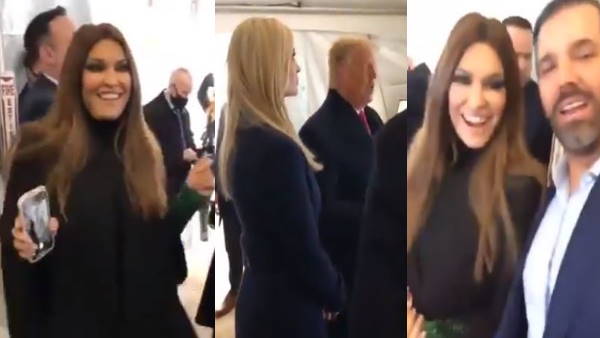इस दौरान ट्रम्प जूनियर कैमरे को दूसरी तरफ घुमाते हैं जिसमें राष्ट्रपति डोनाल्ड ट्रंप बेटी इवांका के साथ खड़े दिखाई दे रहे हैं और कुछ बात कर रहे हैं। जहां पर सभी खड़े हैं वहां तेज संगीत बज रहा है और किम्बरली डांस भी करती नजर आती है।