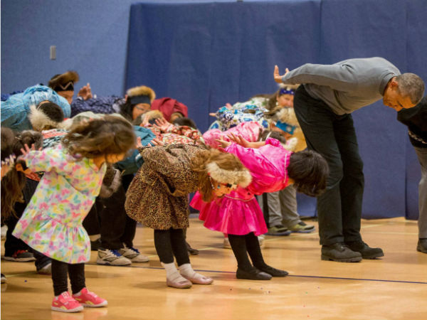 अपने तीन दिवसीय अलास्का दौरे पर ओबामा डिल्लीघंम मिडिल स्कूल पहुंचे थे। यहां पर बच्चों ने कई तरह के कल्चरल प्रोग्राम उनके सम्मान में पेश किए। इनमें से ही था अलास्का का फोक डांस।