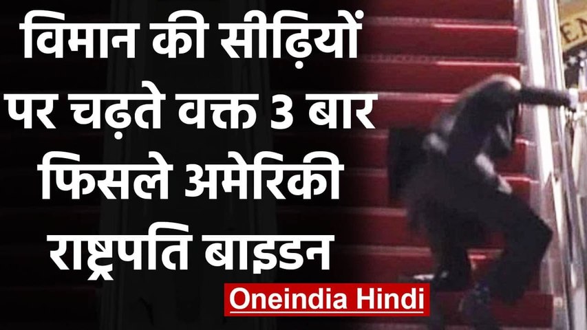 विमान की सीढ़ियां चढ़ते वक्त 3 बार फिसले अमेरिकी राष्ट्रपति जो बाइडेन, वायरल हुआ वीडियो