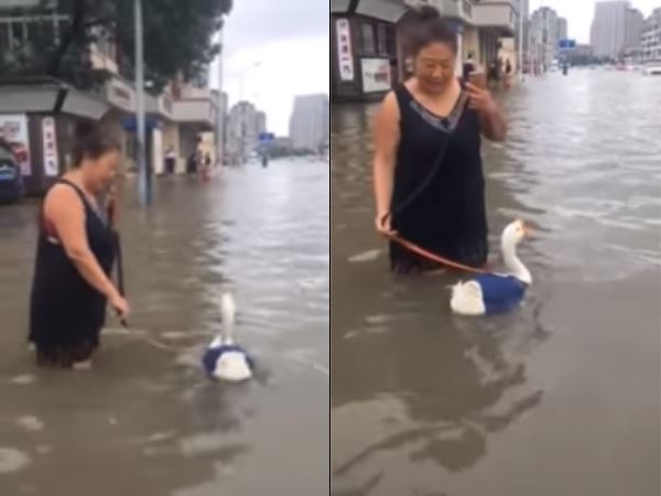 नई दिल्ली। लगातार बारिश के चलते भारत के कई राज्यों में बाढ़ जैसे हालात हैं और लोगों को भारी परेशानी का सामना करना पड़ा रहा है तो चीन के तिआनझिन में भी बारिश के बाद सड़कों पर पानी भरा है। एक तरफ सड़कों पर भरे घुटनों-घुटनों पानी से लोगों का जनजीवन ठप है तो वहीं कुछ इसमें भी मनोरंजन ढूंढ़ ले रहे हैं। एक वीडियो सामने आया है जिसमें चीन के तिआनझिन में एक महिला पानी के बाद तालाब बनी सड़क पर अपनी बतख को घुमा रही है।