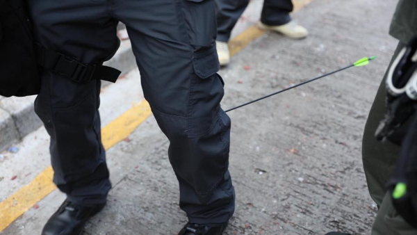 पिछले सप्ताह से कावलून पॉलीटेक्निक यूनिवर्सिटी प्रदर्शन का मुख्य केंद्र बनीं हुई है, इसी दौर छात्रों ने प्रदर्शन का अनोखा तरीका निकाला है। प्रदर्शन कर रहे छात्र पुलिस के आंसू गैस का जवाब तीर-कमान से दे रहे हैं। छात्रों के इस हमले से कई पुलिसवाले भी घायल हुए हैं। सोशल मीडिया पर वायरल हो रही फोटो में देखा जा सकता है कि तीर की वजह से पुलिसवालों को गंभीर चोटें आई हैं। हांगकांग पुलिस ने फेसबुक पर ऐसी ही एक घटना की तस्वीर पोस्ट की है।