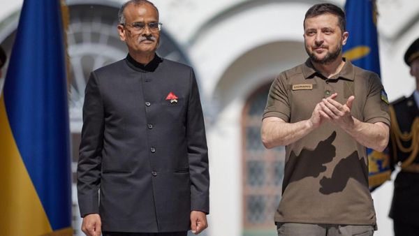 यूक्रेन के राष्ट्रपति जेलेंस्की ने गुरुवार को भारत के राजदूत हर्ष कुमार जैन से मुलाकात की थी और इस दौरान आयोजित कार्यक्रम में उन्होंने महात्मा गांधी के कथन का इस्तेमाल कर यूक्रेनी लोगों का हौसला बढ़ाया। आपको बता दें कि, यूक्रेन युद्ध शुरू होने के बाद भारत ने यूक्रेन की राजधानी कीव से अपना कार्यालय हटा लिया था और अस्थाई तौर पर वर्सोवा शिफ्ट कर दिया था, लेकिन कीव पर खतरा कम होने के बाद एक बार फिर से भारत ने अपना कार्यालय यूक्रेनी राजधानी कीव में खोल लिया है। भारत के साथ साथ कई और देशों ने भी यूक्रेन की राजधानी कीव में फिर से अपने दूतावास के संचालन की बात कही है।