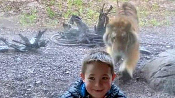 7 वर्षीय सीन चिड़ियाघर में एक बाघ के बाड़े के बाहर फोटो क्लिक कराने के लिए पोज दे रहा था। पीछे बाघ खड़ा था और बच्चे को घूरकर देख रहा था। जैसे ही बच्चे ने पीछे पलटकर देखा तो बाघ शिकार करने के लिए दौड़ा और शीशे से टकरा गया। बच्चे ने देखा तो वो गिर गया। लड़के के पिता रॉब ने इस कंपा कर रख देने वाले पल को अपने कैमरे में कैप्चर कर लिया क्योंकि वो उस वक्त अपने बेटे की फोटो खींच रहे थे।