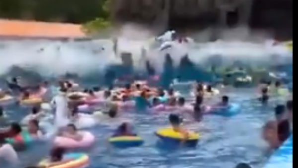 रविवार को नॉर्दन चीन के लोंग शूईयून वॉटर पार्क में लोग संडे को फनडे मनाने के लिए इकट्ठा हुए थे। अचानक ही यहां पर असाधारण तौर पर पानी की ऊंची-ऊंची लहरें उठने लगीं और लहरों में तैराक बहकर दूसरी तरफ चले गए। इस वजह से 44 लोगों को चोट आई और कुछ तो बाउंड्री पार करके दूसरी तरफ जा गिरे। इस घटना के वीडियो में नजर आ रहा है कि एक पूल जिसमें बच्चों के अलावा कुछ बुजुर्ग भी हैं, अचानक पानी की एक तेज लहर में उछल जाते हैं।