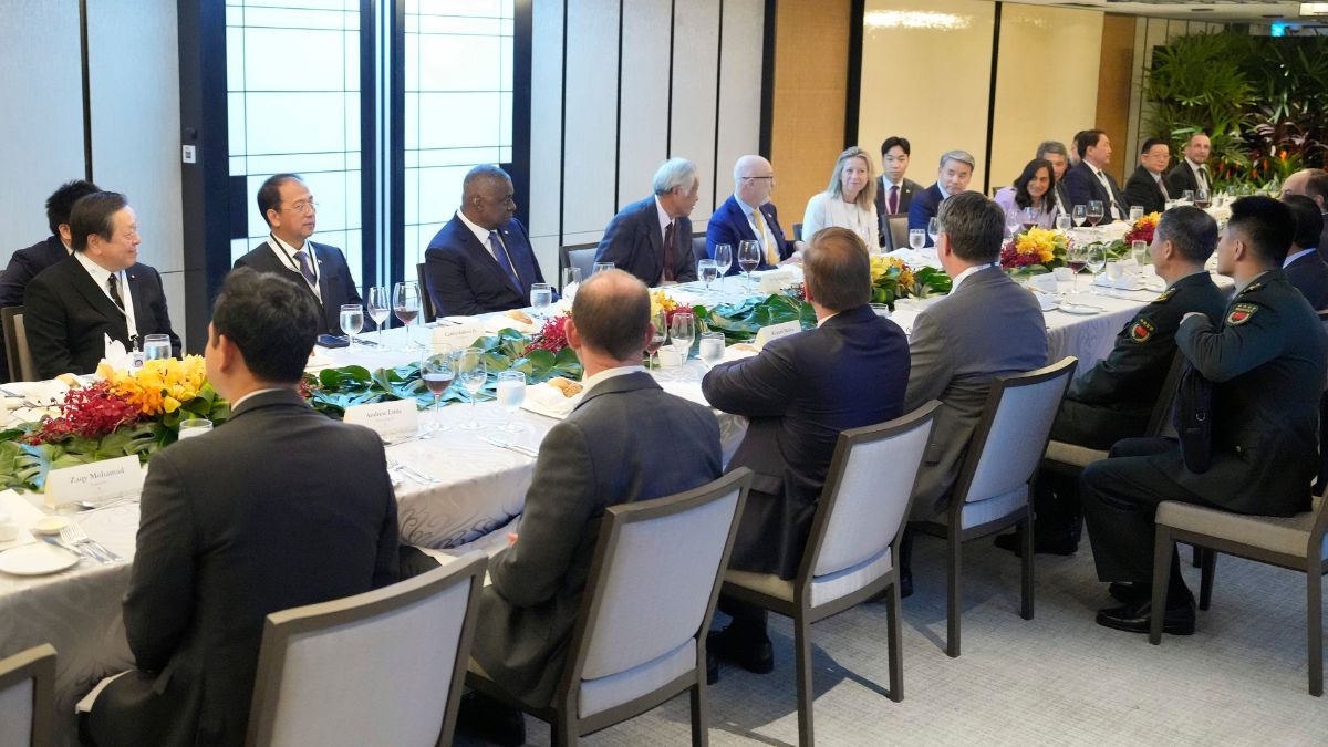 Shangri-La Dialogue Spy Chiefs: सिंगापुर में दुनियाभर के 20 टॉप जासूसी खुफिया एजेंसियों की अनोखी बैठक हुई है, जिसमें संयुक्त राज्य अमेरिका और चीन सहित दुनिया भर की 20 से ज्यादा खुफिया एजेंसियों के जासूसों ने भाग लिया है। (फोटो-शांगरी-ला डायलॉग- चीन और अमेरिका के रक्षा मंत्रियों की बैठक)