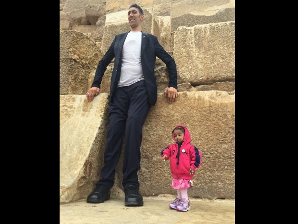 तुर्की के सुल्तान कोसेन के नाम दुनिया के सबसे लंबे पुरुष होने का रिकॉर्ड है। वहीं भारत की ज्योति आमगे दुनिया की सबसे छोटी महिला हैं। दोनों मिस्त्र टूरिज्म को प्रमोट करने के लिए हाल ही में काहिरा में मिले।