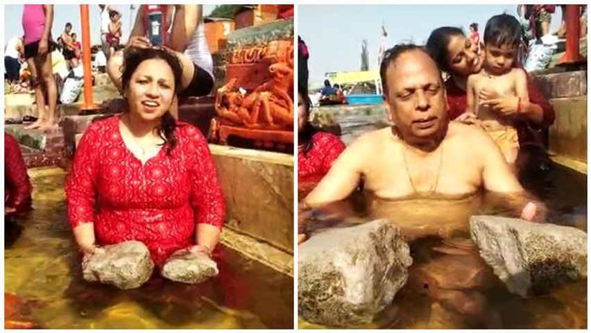 वीडियो में घाट पर कई लोग नर्मदा में डुबकी लगाते दिख रहे हैं। तभी अचानक तैरती हुई कोई चीज यहां नहा रहे लोगों के पास पहुंच जाती हैं। वहां स्नान कर रहे कुछ लोग उसे हाथ में उठा लेते है। फिर उसे तैरते हुए पत्थर होने का दावा करने लगते हैं।