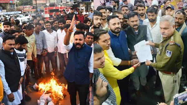 युवा मोर्चा नेता शहर के ओमती थाने भी पहुंचे, जहां कमलनाथ के खिलाफ मामला दर्ज करने लिखित शिकायत दी है। आरोप लगाया गया है कि लगातार प्रदेश कांग्रेस के मुखिया के द्वारा धार्मिक भावनाओं को ठेस पहुँचाने का कृत्य किया जा रहा है। प्रदर्शनकारियों ने एफआईआर दर्ज करने के साथ कमलनाथ की गिरफ्तारी की मांग भी की है। आपको बता दें कि कमलनाथ ने अपने शिकारपुर स्थित बंगले पर केक काटा था। समर्थकों के साथ कीर्ति सुधांशु नाम की महिला केक लेकर पहुंची थी। जिसकी आकृति किसी मंदिर की तरह और उसके ऊपर हनुमानजी फोटो था। उसी केक को काटा गया। जिसका वीडियो सोशल मीडिया पर वायरल हुआ।