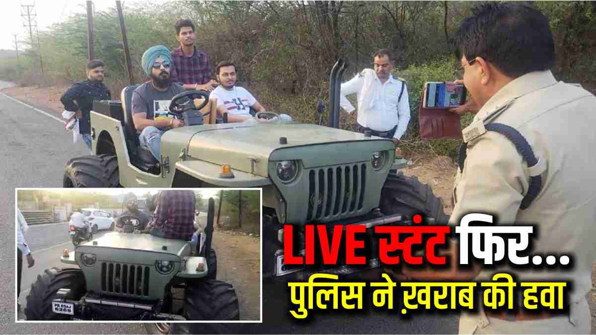 डीएसपी ट्रैफिक नरेश अन्नोटिया ने बताया कि मॉडिफाई जीप पर स्टंट करते हुए वीडियो बनाने वाले युवक फेसबुक लाइव कर रहे थे। रास्ते में गाड़ी लहराते हुए चलाने का भी आरोप है। बोनट पर बैठकर ऐसे स्टंट दूसरे राहगीरों और जीप चला रहे युवकों के लिए भी खतरा साबित हो सकता हैं। उन्होंने अन्य वाहन चालकों से भी इस तरह के स्टंट न करने की गुजारिश की।