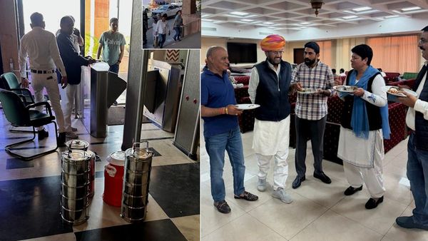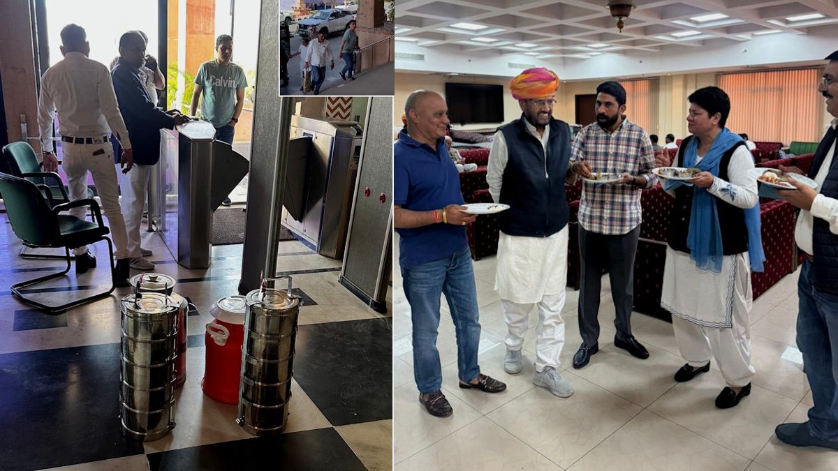 चूरू जिले के सरदारशहर के विधायक अनिल शर्मा अपने घर से बड़े-बड़े टिफिन में कांग्रेस विधायकों के लिए खाना लेकर राजस्थान विभानसभा पहुंचे। अनिल शर्मा के पिता भंवरलाल शर्मा भी अपने समय में इसी तरह से कांग्रेस के विधायकों के लिए घर का भोजन उपलब्ध करवाते थे।