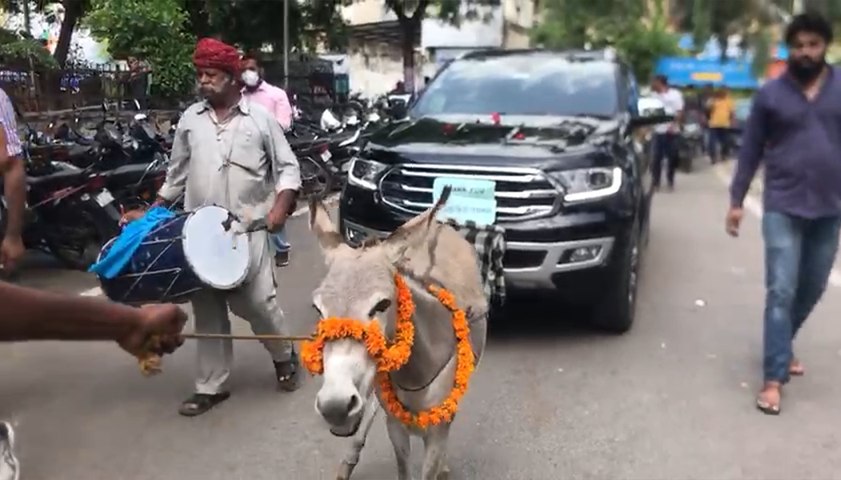 जयपुर, 14 अगस्त। राजस्थान की राजधानी जयपुर में लग्जरी गाड़ी को गधे के द्वारा खींचने का मामला सामने आया है। इतना ही नहीं परेशान कस्टमर ने गधे से गाड़ी खींचवाते हुए पहले तो शहर में जुलूस निकाला और फिर गाड़ी को ले जाकर शोरूम में खड़ा कर दिया।
