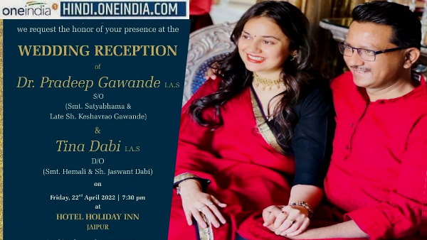 आईएएस टीना डाबी और प्रदीप गवांडे कब और कहां शादी करेंगे? इसकी अभी कोई पुख्ता जानकारी सामने नहीं आई है, मगर दोनों का वेडिंग रिसेप्शन कार्ड सोशल मीडिया में वायरल हो रहा है। कार्ड के अनुसार वेडिंग रिसेप्शन 22 अप्रैल 2022 को जयपुर की होटल इन में शाम साढ़े सात बजे होगा। कार्ड पर स्वागतकर्ताओं में टीना डाबी की छोटी बहन व राजस्थान कैडर की आईएएस रिया डाबी का भी नाम है।