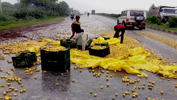 कोटा-जयपुर नेशनल हाइवे पर बिखरे नीबू, ग्रामीण व राहगीर में मची नीबू लूट ले जाने की होड़