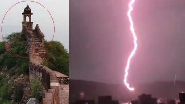 जयपुर आकाशीय बिजली की घटना से जुड़े वीडियो सोशल मीडिया में वायरल हो रहे हैं, जिनमें दावा किया जा रहा है कि रविवार शाम को आमेर महल के पास स्थित वॉच टावर पर आकाशीय बिजली गिरने की घटना मोबाइल कैमरे में कैद हुई है।