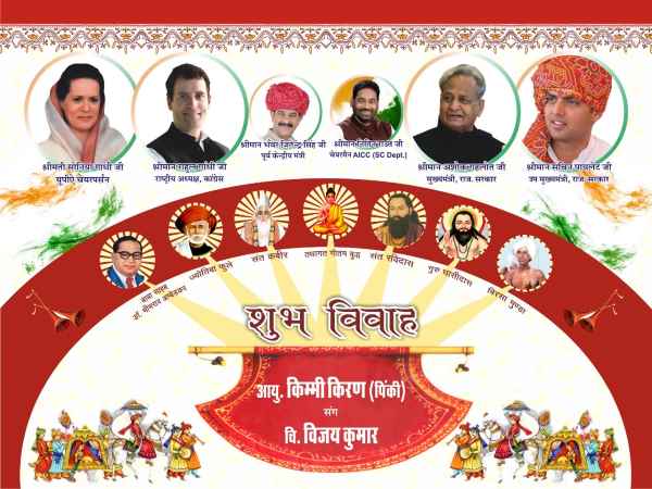 लोगों को बतौर निमंत्रण पत्र भेजे जा रहे शादी के इस कार्ड में गणेश की बजाय UPA चेयरपर्सन सोनिया गांधी, कांग्रेस अध्यक्ष राहुल गांधी, मुख्यमंत्री अशोक गहलोत, उप मुख्यमंत्री सचिन पायलट, पूर्व केन्द्रीय मंत्री भंवर जितेन्द्र सिंह, AICC के चेयरमैन नितिन राउत की फोटो छपवाई गई है।