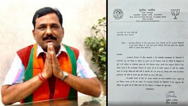 जयपुर। राजस्थान बीजेपी के प्रदेश उपाध्यक्ष मुकेश दाधीच ने प्रधानमंत्री नरेंद्र मोदी को खत लिखकर एक नए विवाद को जन्म दे दिया है। इस खत में मुकेश दाधीच ने जनसंख्या नियंत्रण के विज्ञापनों का जिक्र किया है और लिखा है कि इस प्रकार के विज्ञापनों में अब बुर्के वाली महिलाओं और टोपी वाले पुरुष को भी दिखाया जाना चाहिए।