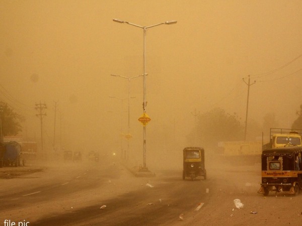 यहां तेज हवाओं के साथ धूलभरी आंधी ( Dust Storm )