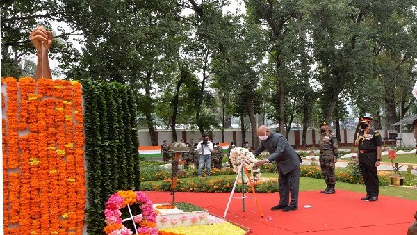 नई दिल्ली, जुलाई 26। 22वें कारगिल विजय दिवस के मौके पर राष्ट्रपति रामनाथ कोविंद ने बारामूला के वॉर मेमोरियल पर शहीदों को श्रद्धांजलि अर्पित की। आपको बता दें कि आज कारगिल विजय दिवस के 22 साल पूरे हो गए हैं। इस मौके पर राष्ट्रपति जम्मू कश्मीर में हैं और उन्होंने सोमवार को युद्ध स्मारक पर कारगिल में शहीद जवानों को पुष्पांजलि अर्पित की। राष्ट्रपति रामनाथ कोविंद पहले द्रास में कारगिल युद्ध स्मारक पर शहीदों को श्रद्धांजलि देने के लिए जाने वाले थे, लेकिन लद्दाख में खराब मौसम के कारण उनकी इस यात्रा को रद्द कर दिया गया।