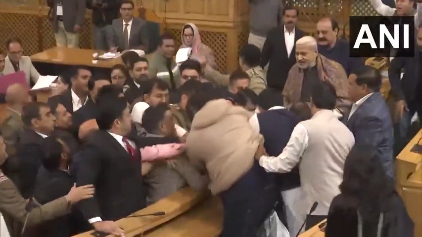 विपक्ष के नेता सुनील शर्मा ने विधायक खुर्शीद अहमद शेख के आर्टिकल 370 को लेकर दिखाए गए बैनर का विरोध किया। बैनर को देखकर भाजपा के विधायक भी भड़क गए, उन्होंने इस बैनर को छीन लिया और इसे फाड़ दिया। इसी दौरान भाजपा विधायक और कुर्शीद अहमद के बीच हाथापाई होने लगी और सदन में हंगामा मच गया।