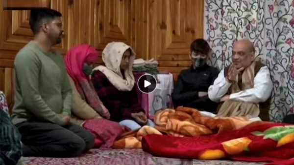 कश्मीर में गृहमंत्री: आतंकियों से मुठभेंड़ में शहीद हुए इंस्पेक्टर परवेज अहमद के घरवालों से मिले अमित शाह