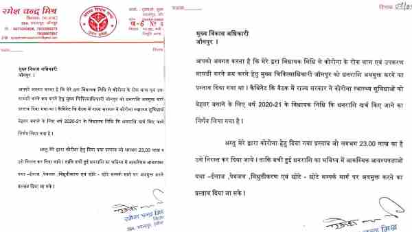 जौनपुर। कोरोना वायरस महामारी को मात देने के लिए जहां एक तरफ पूरा देश एकजुट होकर लड़ाई लड़ रहा है और दलगत राजनीति से ऊपर उठकर हर जरूतमंद की मदद कर रहा है। वहीं, उत्तर प्रदेश के जौनपुर से एक हैरान करने वाली खबर सामने आई है। यहां भाजपा के एमएलसी सहित चार विधायकों व बसपा की एक विधायक ने सीडीओ को पत्र लिखकर निधि की धनराशि का उपयोग करने से मना कर दिया है।