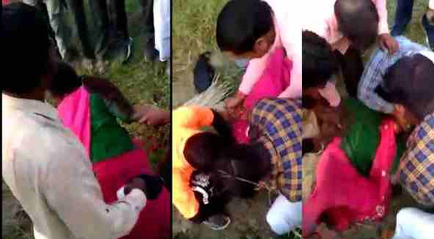 VIDEO: पर्स चोरी का आरोप लगा जौनपुर में महिला को लात-घूंसे और जूते से पीटा