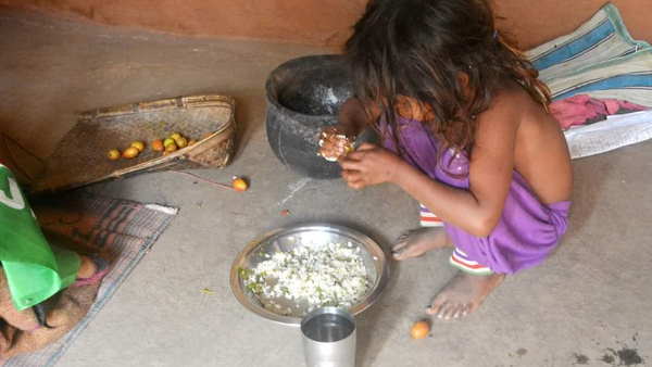 बता दें कि यह मासूम 70 साल की बुजुर्ग महिला चुड़की मुर्मू की नातिन है। बुजुर्ग की बेटी भी उन्हीं के साथ रहती है। घर में कोई पुरुष सदस्य नहीं है। इस परिवार को एक साल से राशन नहीं मिला है। चुड़की को पेंशन मिलती है। इससे वो लोग खाने के लिए चावल खरीद लेते हैं। लेकिन दाल-सब्जी या दूसरी खाने वाली चीजें नहीं खरीद पाते। उन्हें पत्ता गोभी सस्ता और आसानी से मिल जाता है। इसलिए इसे चावल से खाते हैं।