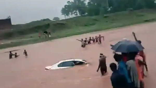 झारखंडः शादी कर लौट रहे दूल्हा-दुल्हन की कार अचानक से पानी की तेज धारा के बीच डूबने लगी फिर...