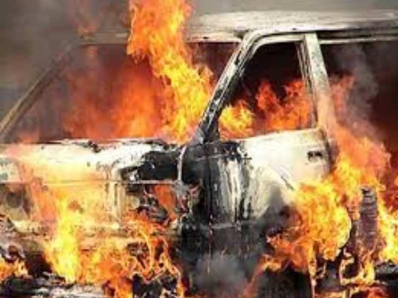 वैन में लगी आग से बचने के लिए घास में कूदा चालक, उसने ने भी पकड़ ली आग, जिंदा जला