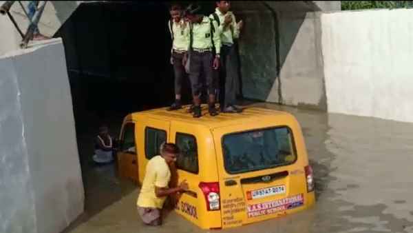 कुशीनगर: पानी से भरे अंडरपास के नीचे फंसी स्कूल वैन, ग्रामीणों की सूझबूझ से बची बच्चों की जान